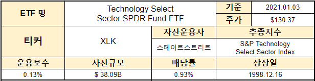 ▶스테이트 스트리트 자산운용사에서 운용을 하는 ETF이며 티커는 XLK를 이용하고 있습니다.
