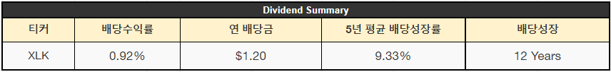 # 그로 인해 XLK ETF의 배당수익률이 적게 나옵니다.